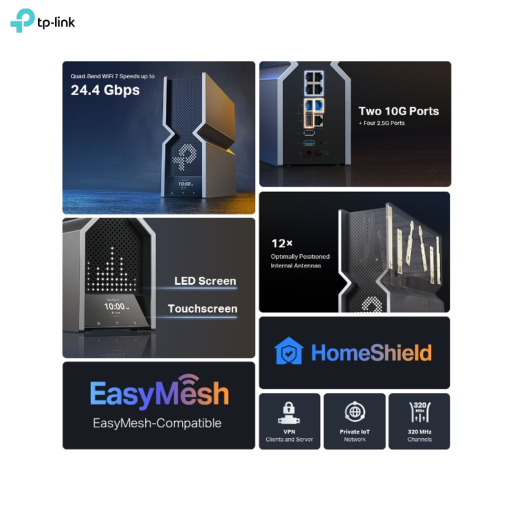 | Advanced Features | • 320 MHz Channel • 4K-QAM • Multi-RUs • EasyMesh-Compatible • Works with Alexa and Google Assistant • IoT Network |